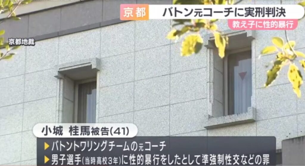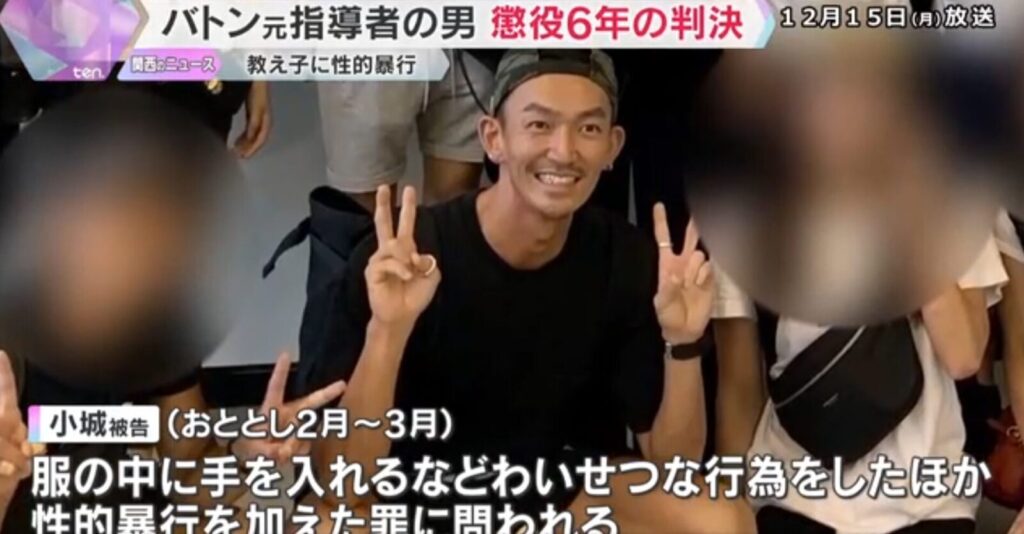 小城桂馬被告は、学校教員ではなく、バトントワリングチームの元指導者という立場で活動していた人物です。